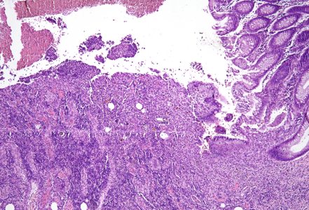 Sevelamer-induced GI side effects are complications which can affect GI tract from oesophagus to the rectum and may cause nausea, vomiting, diarrhoea, gastroesophageal reflux, dyspepsia, abdominal pain, constipation, obstruction, flatulence and perforation. Histologically visible side effects are mucosal injury with acute inflammation, necrosis, and ulceration. In our case, mucosal injury was most probably caused by a combination of two factors, which are ischemic injury due to aortic dissection that was aggravated by the drug effect.