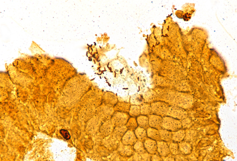 A 68-year-old female underwent gastroscopy, showing mild, unspecific inflammatory changes of the gastric mucosa, and biopsies from antrum and corpus region were taken.
