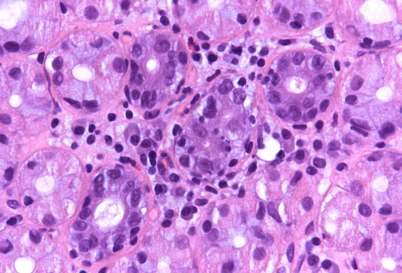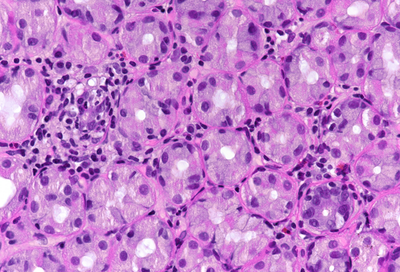 It is important that pathologists recognize this pattern of secondary (early) autoimmunity in gastritis positive for Helicobacter pylori, as this pattern stresses the need for eradication treatment as well as post-eradication controls. These should be carried out systematically (with biopsies from corpus and fundic region) to follow-up potentially remaining autoimmune gastritis.