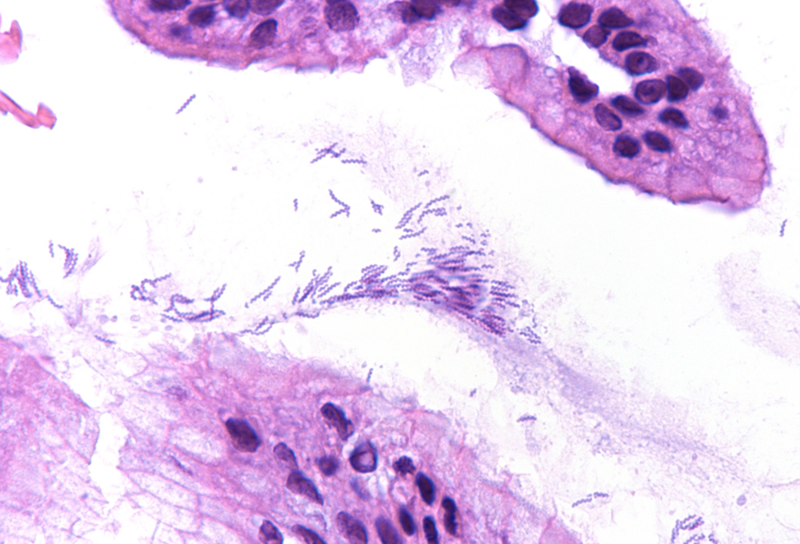 Gastritis due to infection with Helicobacter heilmannii in humans is rare. The bacteria are more frequently found in cats, dogs, pigs and carnivorous mammals, and zoonotic transmission is assumed. Diagnosis is mainly based on histological examination of gastric biopsies, PCR and rapid urease testing can aid diagnosis. H. heilmannii-associated gastritis is treated with triple or quadruple eradication regimens similar to H. pylori treatment.