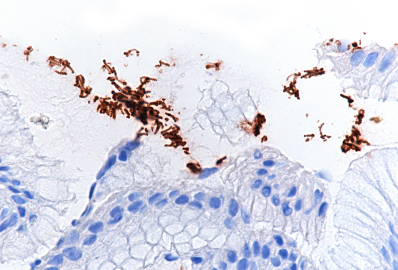 H. heilmannii-associated gastritis exhibits similar histological features to H. pylori-associated gastritis with chronic lymphoplasmacytic inflammation that is mainly located in the antrum. Occasionally, focal neutrophilic active inflammation, erosions and ulceration are observed. In comparison to H. pylori-associated gastritis, H. heilmannii-associated gastritis usually shows a lesser extent and milder degree of inflammation. Gastric H. heilmannii infection has been associated with intestinal metaplasia, gastric cancer and MALT-lymphoma.