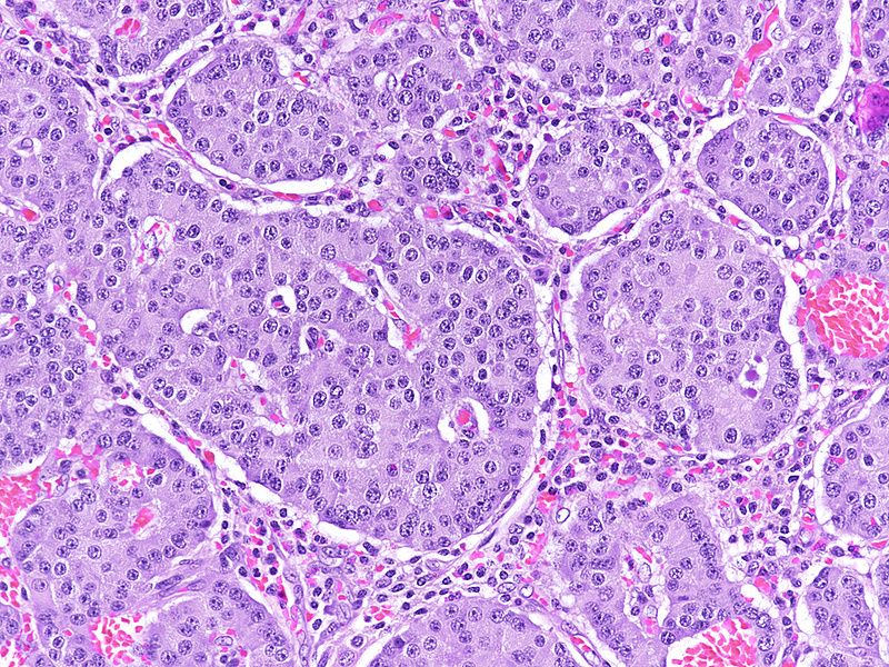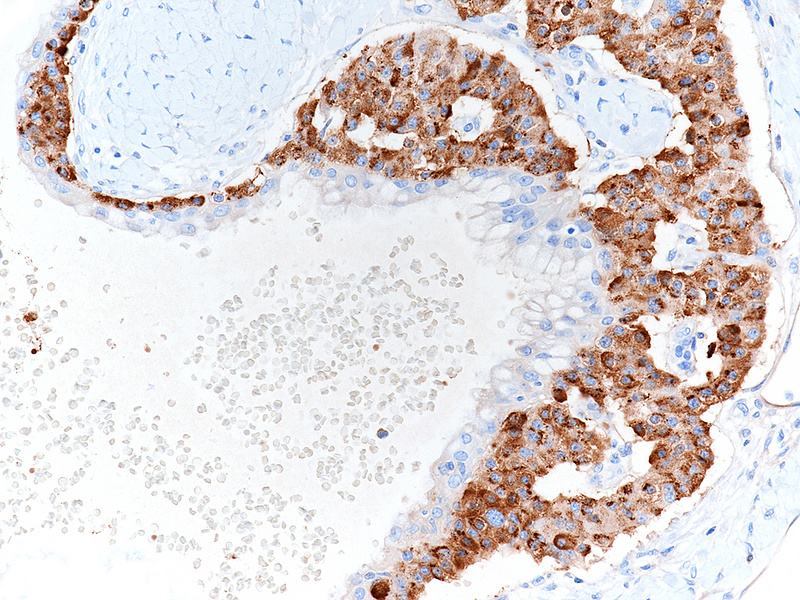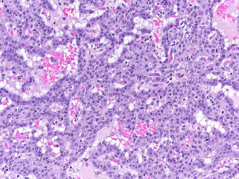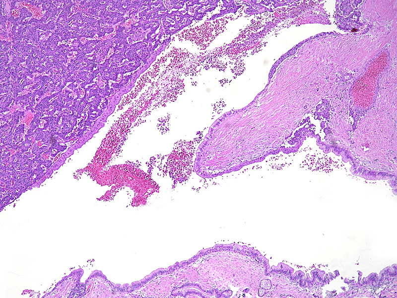 The occurrence of two distinct tumour types within the pancreas has only rarely been described in the literature. Our case is only the fourth case of a true mixed tumour with IPMN and NET components. Two previous cases have additionally been investigated by molecular pathology (Chen et al. Diagn Pathol 2021; Shiavo Lena et al. Virchows Arch 2021). The authors noted identical genetic signatures in both tumour parts, thereby suggesting a common lineage, that is, tumour development from a multipotent pancreatic precursor cell.