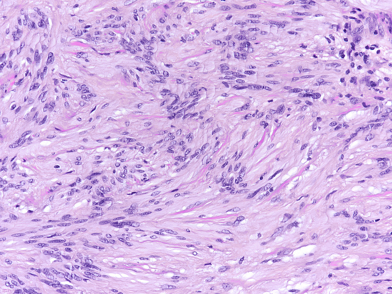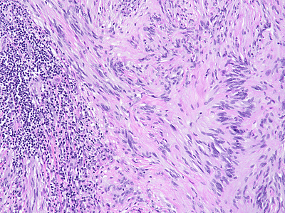 Clinically, patients may present as acute/subacute appendicitis or may be asymptomatic, the appendiceal mass lesion being an incidental finding on image analysis performed for other reasons. The differential diagnosis of spindled neoplasm in the appendix includes gastrointestinal stromal tumour (GIST), leiomyoma, other benign peripheral nerve sheath tumors (neurofibroma, perineurioma, hybrid benign peripheral nerve sheath tumours) and malignant peripheral nerve sheath tumour (MPNST).