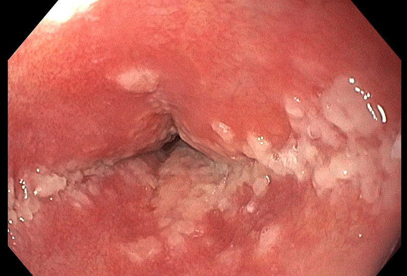 HSV accounts for 10% of all infectious oesophagitides and is considered the most common viral cause, mostly due to HSV-I. Primarily, it occurs in immunosuppressed patients (prior chemotherapy, solid and bone marrow transplantation recipients, and HIV infection), but may also encounter in healthy immunocompetent individuals with usually mild symptoms, as a self-limited infection.