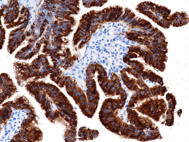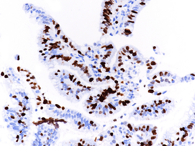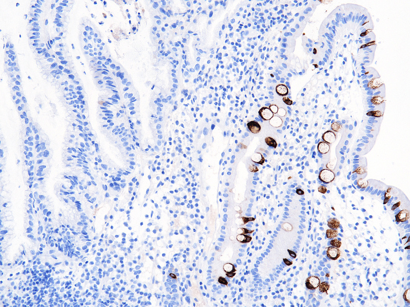 The “intestinal” type of gastric carcinomas usually develops via an atrophy-metaplasia-dysplasia-carcinoma sequence. Traditionally, the gastric dysplasia occurring against a background of intestinal metaplasia shows an intestinal phenotype that recapitulates the morphology of colonic adenomas (MUC2 positive, MUC5AC and MUC6 negative). The same phenotype dominates the picture in Barrett’s dysplasia.