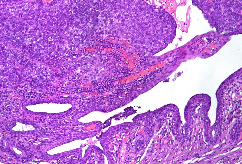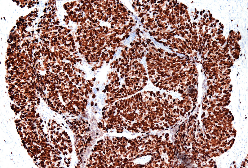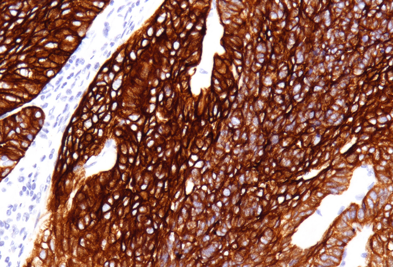 Immunohistochemistry is crucial for diagnosis: anal gland-type tumors are typically CK7 and MUC5AC positive and CK20 and CDX2 negative, aiding in their distinction from rectal adenocarcinomas, which show exactly the opposite pattern. CK5/6 and p63, positive in benign anal glands, are usually negative in anal gland carcinomas. This immunoprofile also assists in distinguishing them from other differentials, such squamous cell carcinoma, anal mucoepidermoid carcinoma, neuroendocrine carcinomas and metastatic tumors from the gynecologic tract or breast.