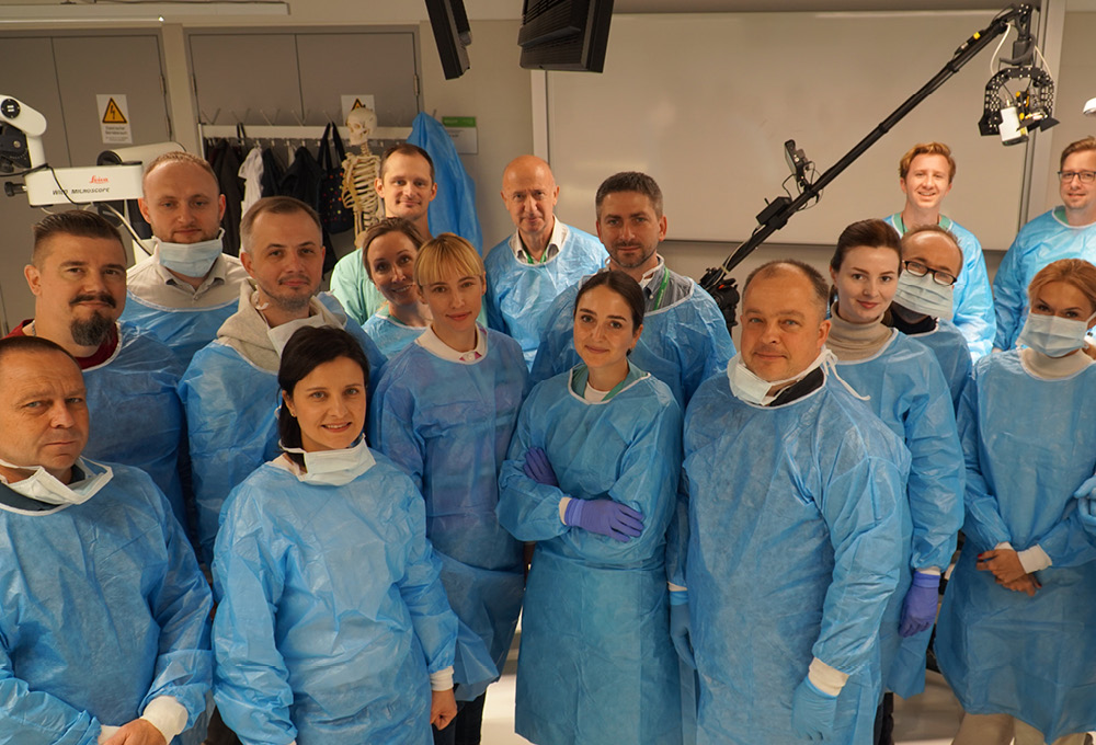 Von 10. – 15. Oktober 2025 nahmen Vertreter*innen der Danylo-Halyzkyj-Nationalen Medizinischen Universität Lwiw (LNMU) im Rahmen eines Erasmus+ Fortbildungsaufenthalts an einem Kurs zur plastischen Rekonstruktion des Kopfs und Halses an humanen anatomischen Präparaten am Lehrstuhl für Makroskopische und Klinische Anatomie, Gottfried Schatz Research Center der Medizinischen Universität Graz teil. Das multidisziplinäre Team umfasste 12 Spezialist*innen aus den Bereichen Mund-, Kiefer- und Gesichtschirurgie, Oralchirurgie, Allgemeinchirurgie, Traumatologie und Orthopädie und Gefäßchirurgie.