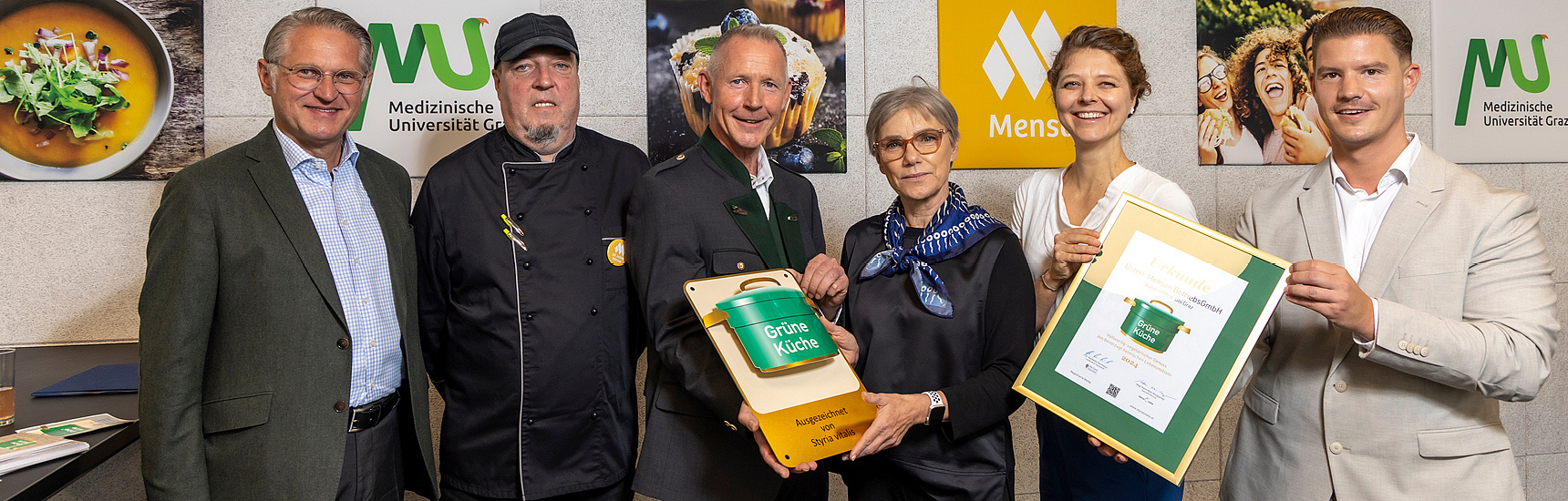 Diese hohe Auszeichnung bestätigt die hervorragende Arbeit, die an der Mensa der Med Uni Graz geleistet wird. "Wir haben uns als Team das Ziel gesetzt, mit der „Grünen Küche“ unseren Gästen eine regionale, saisonale, vollwertige und gesunde Ernährung zu bieten. Vielen Dank an meinen Küchenchef Horst Wolfgruber und an das gesamte Team", freut sich Betriebsleiter Christian Jokesch über die Verleihung dieses wichtigen Gütesiegels.