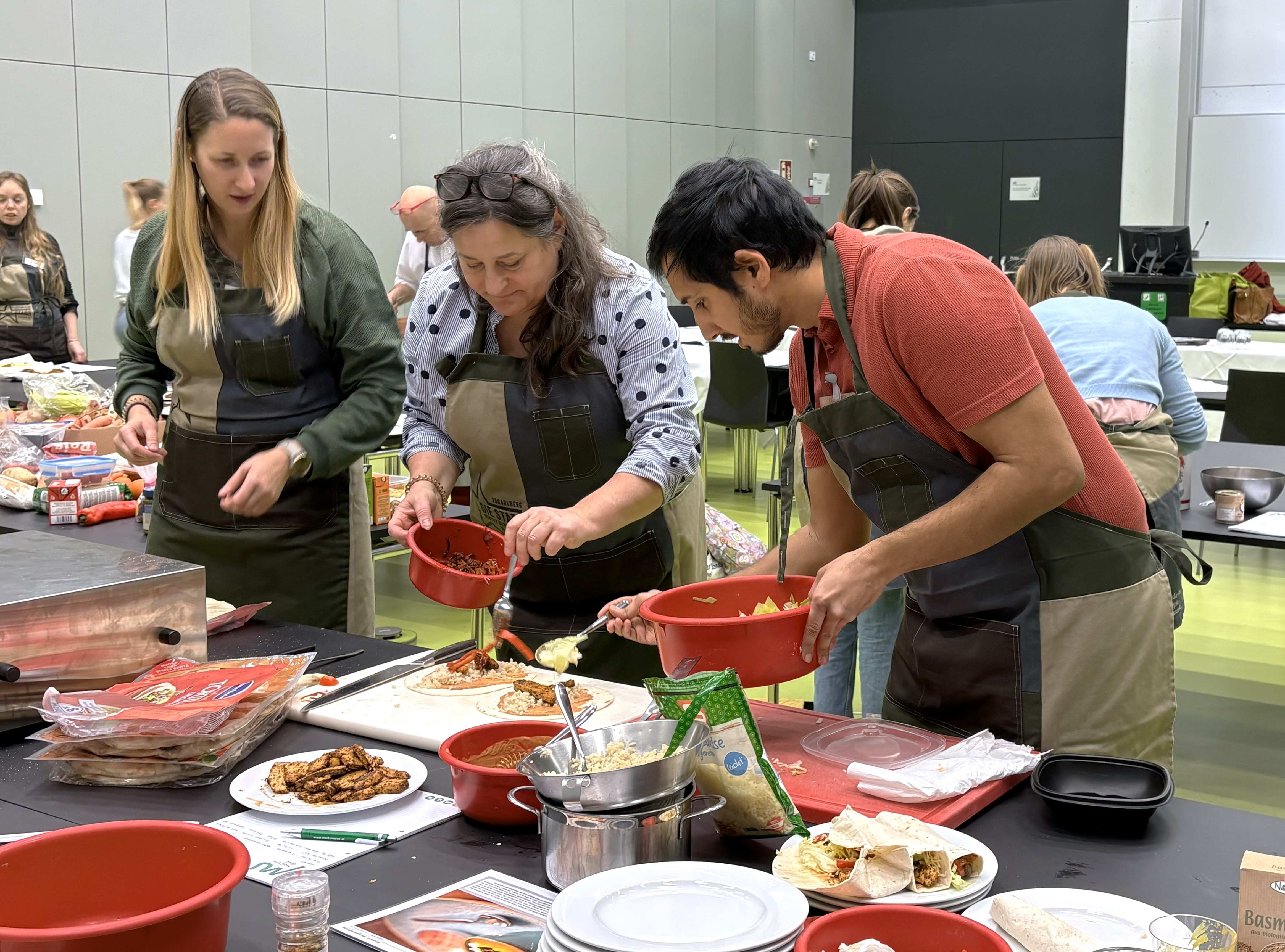 In entspannter Atmosphäre kochten zehn Studierende gemeinsam kreative Gerichte, mit eher unbekannten oder geretteten Lebensmitteln. Beim gemeinsamen Verkosten wurden Rezepte, Zutaten und alltagstaugliche Tipps für eine gesunde, nachhaltige Küche mit den Expert*innen besprochen. Das Format verbindet praxisnahes Ernährungswissen mit dem niederschwelligen Austausch und stärkt damit die Gemeinschaft am Campus. Aufgrund der positiven Rückmeldungen ist die Fortführung der Campus Cooking Night geplant, zudem soll unter anderem aus den gesammelten Rezeptideen ein Med Uni Graz Kochbuch mit Lieblingsgerichten und der ein oder anderen persönlichen Geschichte dazu, entstehen.
